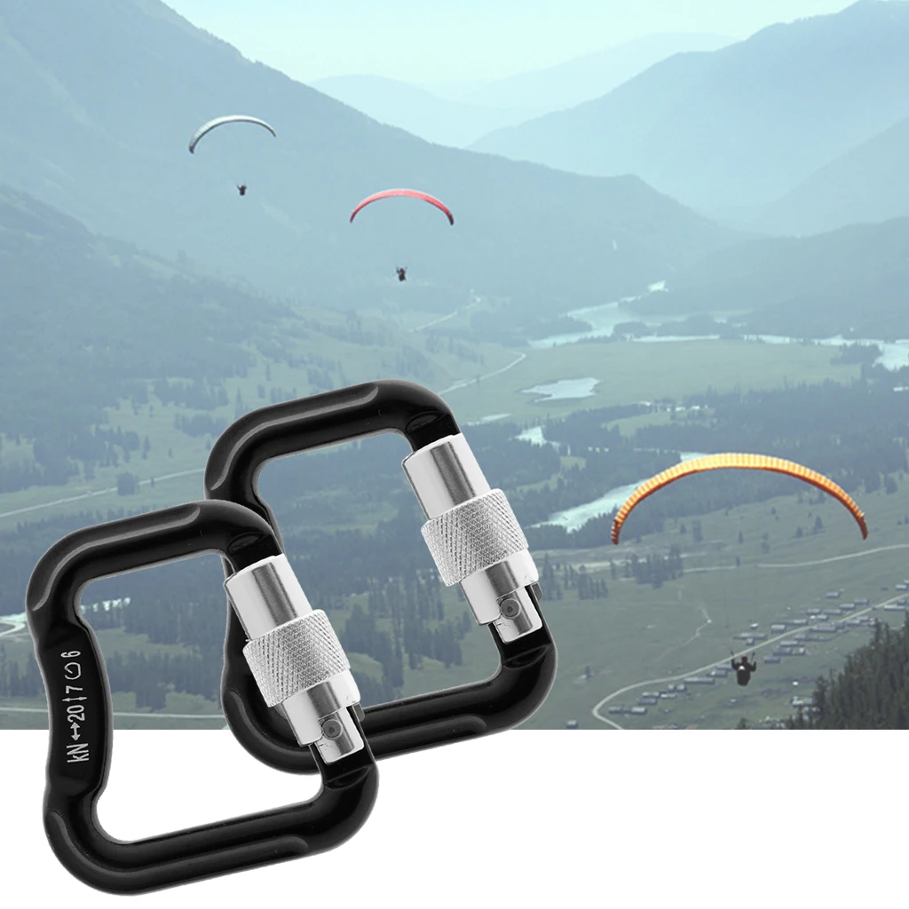 Best Quality 2 Pieces / Set 20KN Abseiling Paragliding Paraglider Parachute Snap Auto Lock Carabiner Outdoor Too