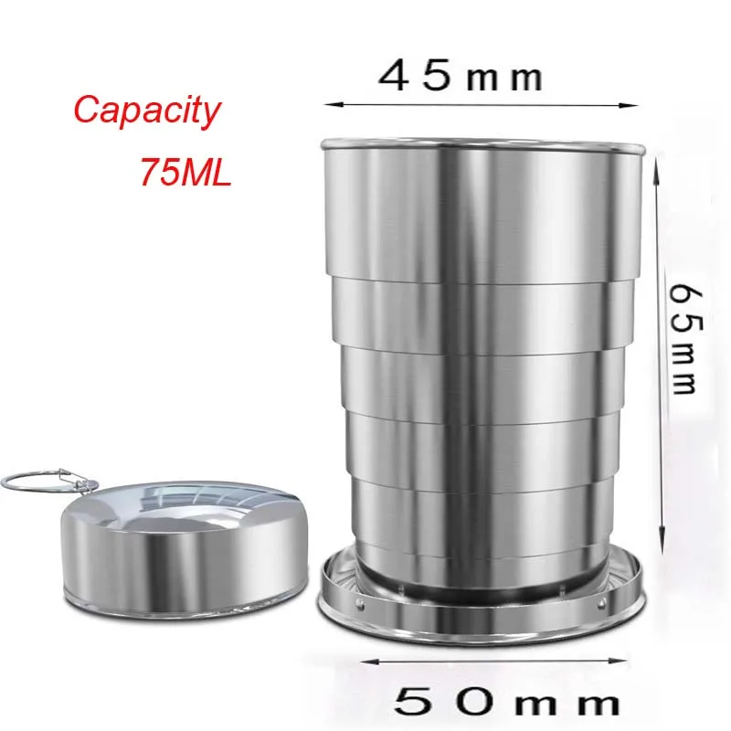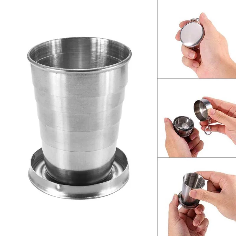 Outdoor Stainless Steel Folding Cup Travel Tool Kit Survival EDC Gear Portable Telescopic Cup Mug P